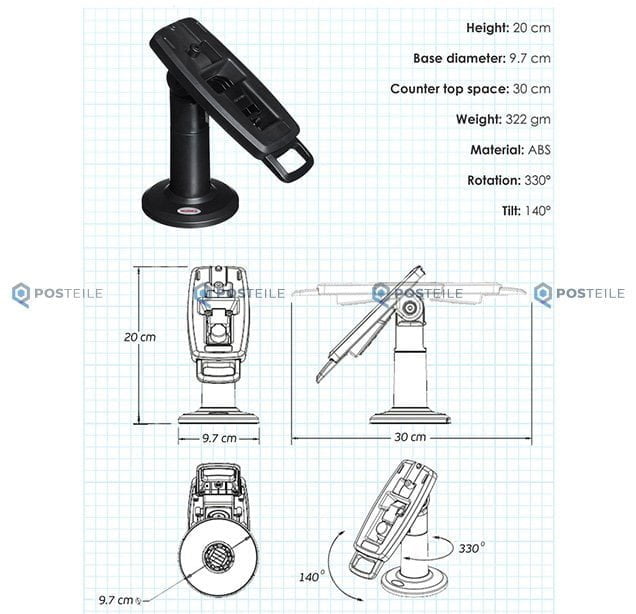 Der Ingenico IPP350 Terminal Ständer stellt sicher dass Ihr Zahlungsterminal einfach an Ihrem Schalter oder an der Wand befestigt werden kann. Bis zu 330c drehbar und für Unternehmer und Kunden einfach zu bedienen. Verhindert Schäden durch Stürze und Wasser.